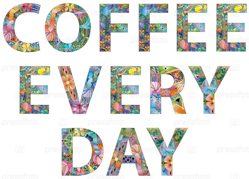 Ручная роспись. Нарисованные от руки слова КОФЕ КАЖДЫЙ ДЕНЬ для футболки и других украшений