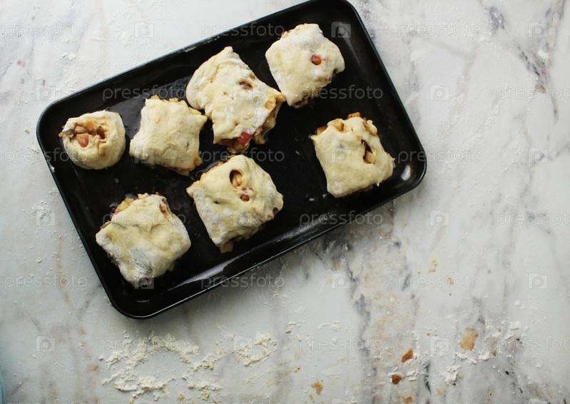 Булочки из сырого теста вид сверху. Концепция домашней выпечки