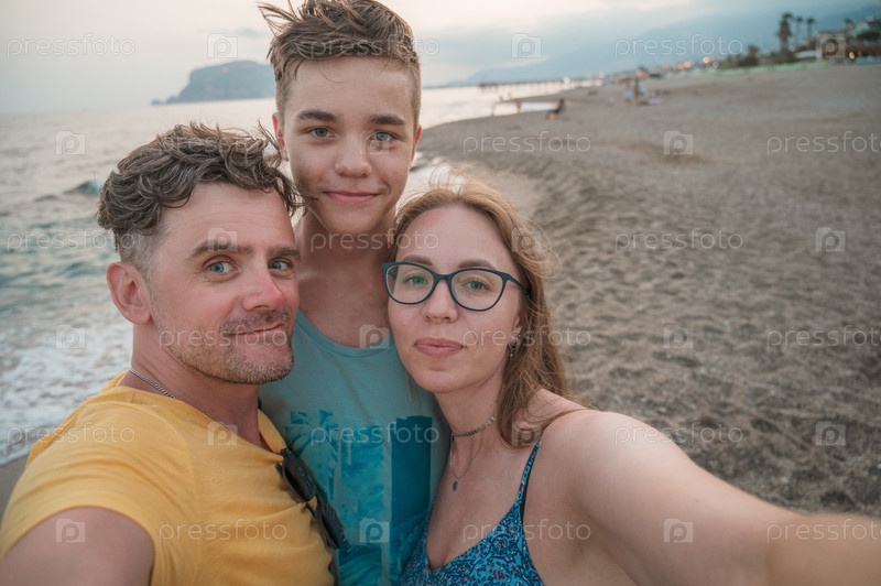 Счастливая семья фотографируется