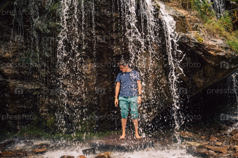 Человек у водопада летом на Алтае