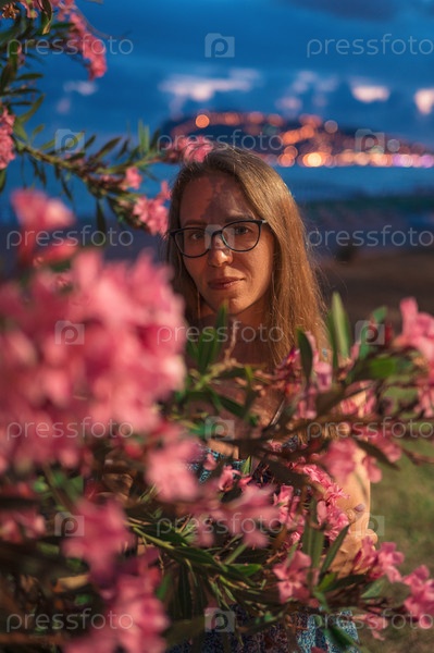 Женщина на ночном пляже на море в городе Аланья, Турция. Концепция путешествия или отпуска