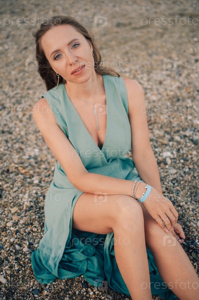 Женщина в развевающемся платье на пирсе у моря