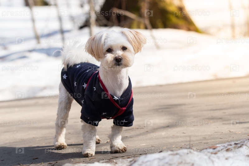 Бишон фризе в заснеженном лесу