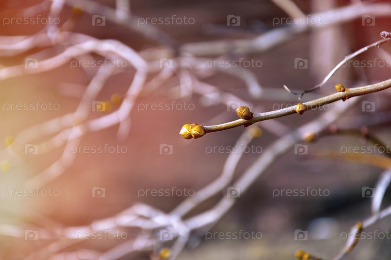 Весна красивые ветви с почками на солнце набухают и распускаются