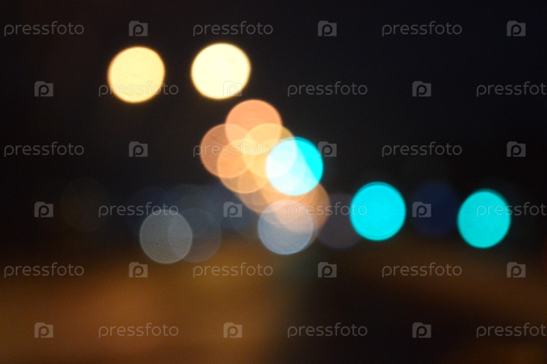 Красивый облачный фон ночной дороги с разбросанными по сторонам от светофоров ночного города