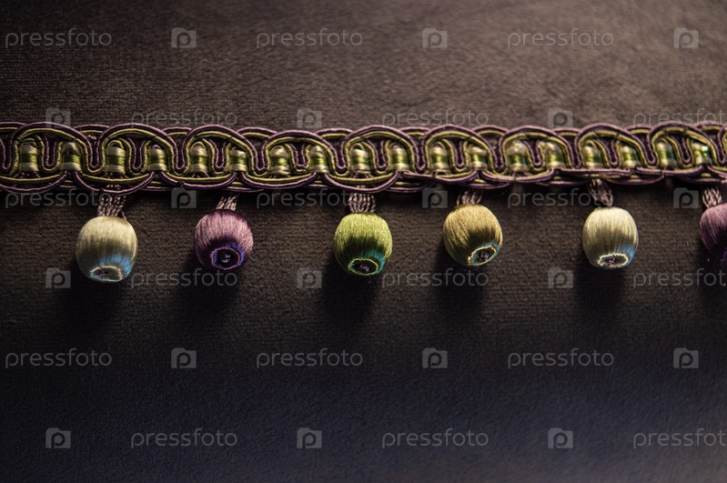 Темная тканевая фотография с бархатистой поверхностью и пупырышками на бахроме. Красивый фон на тему шитья и рукоделия и просто как баннер для вашего текста