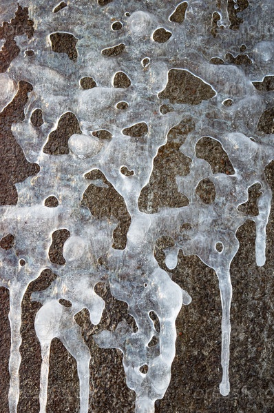 Неуклюжий узор из замерзших сосулек на ржавой металлической поверхности