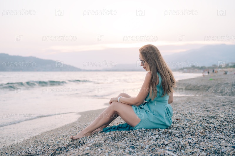 Женщина в развевающемся платье на пирсе у моря