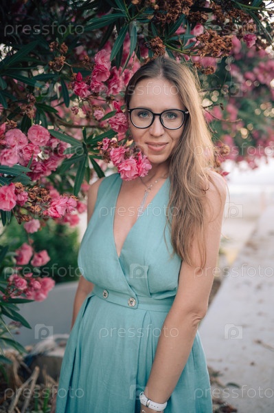 Элегантная женщина позирует с розовыми цветами на открытом воздухе