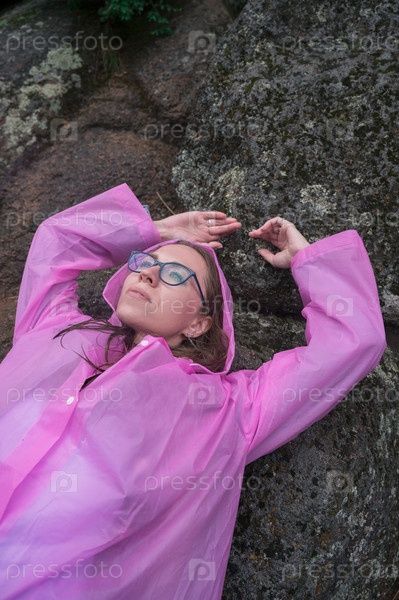 Женщина в таежном лесу и скалах природного заповедника «Столбы»