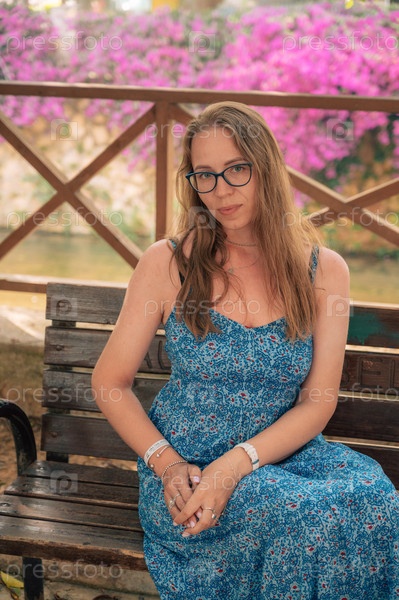Женщина сидит на скамейке в городе Аланья