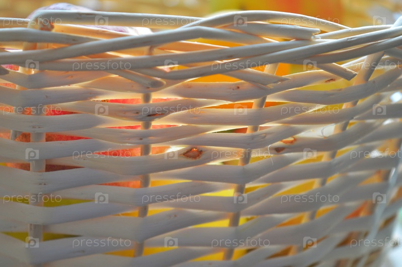 Текстура плетеной корзины. Фрукты видны за стенкой корзины