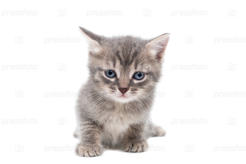 Серый котенок на белом фоне