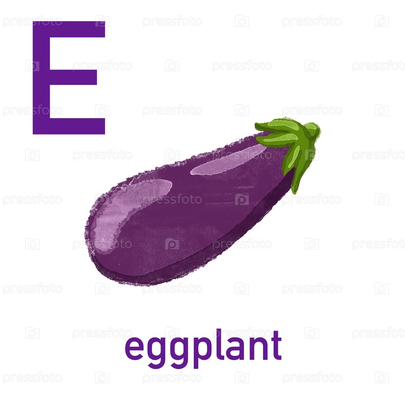 Акварельный английский алфавит из милых фруктов и овощей. Акварельная иллюстрация еды. Вегетарианский алфавит. Назад в школу. Баклажан