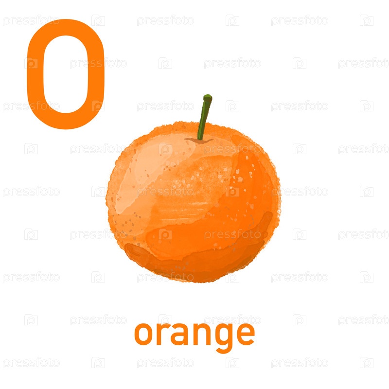 Акварельный английский алфавит из милых фруктов и овощей. Акварельная иллюстрация еды. Вегетарианский алфавит. Назад в школу. Оранжевый