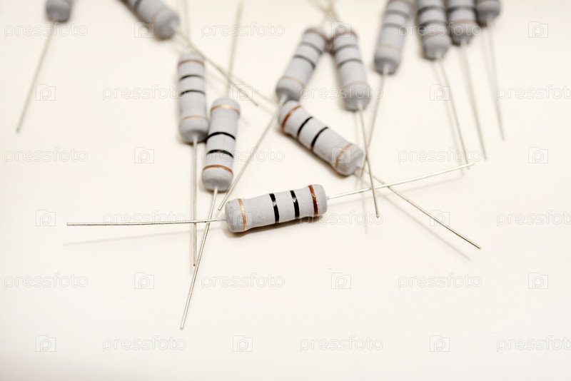 Керамические резисторы на белом фоне. Электронные компоненты для электронных устройств