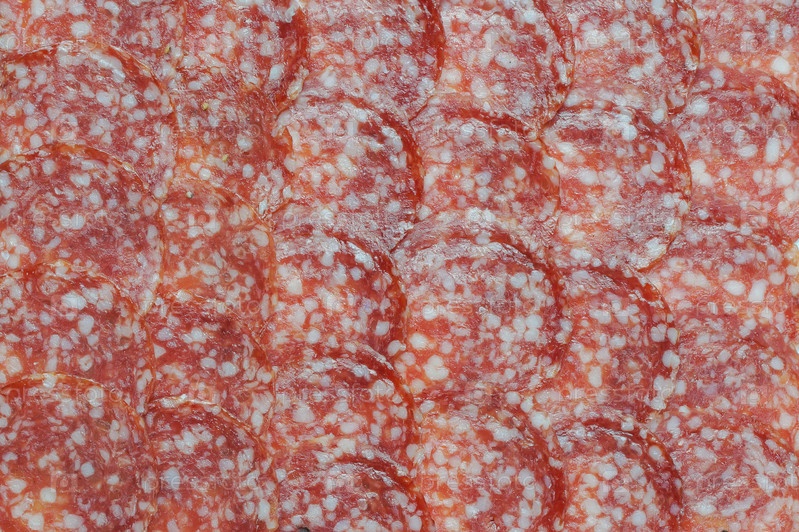Фоновая текстура колбасы, узор из ломтиков колбасы