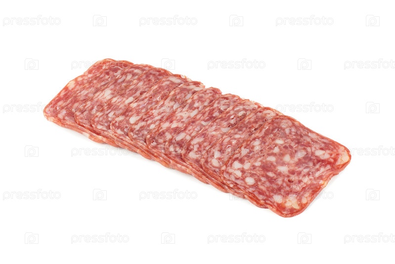 Колбаса варено-копченая Сервелат Зернистая на светлом фоне