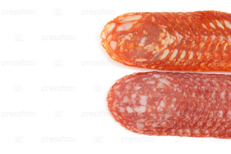 Копченая колбаса салями, изолированная на белом фоне