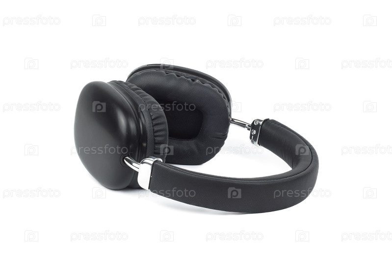 Черный наушник на белом фоне