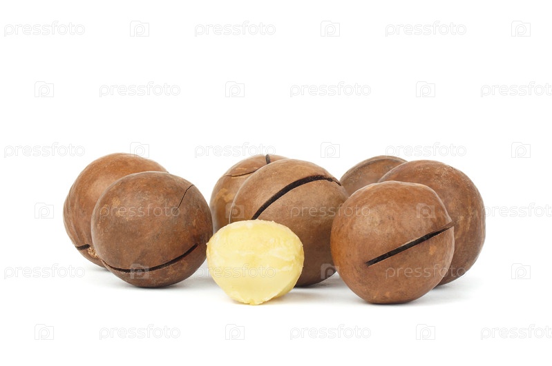 Орехи макадамия на белом фоне