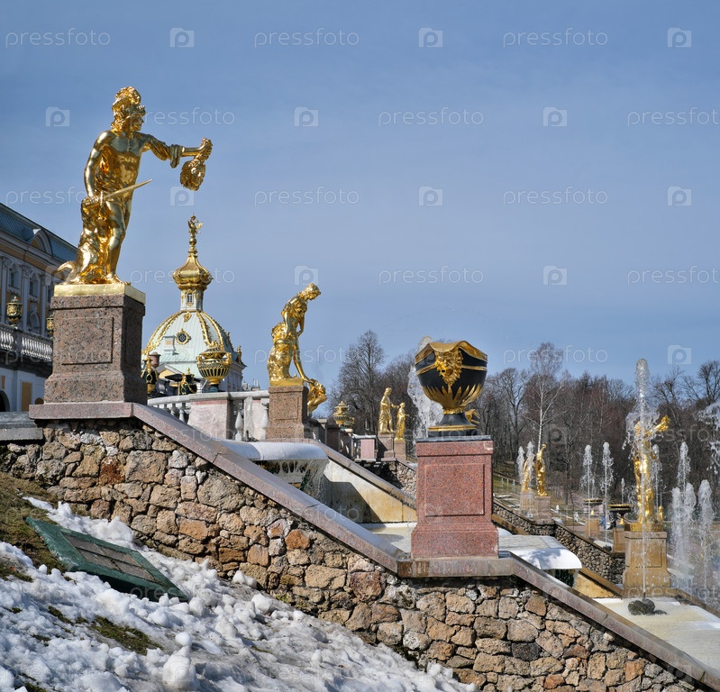 Нижний парк Петродворца, Большой каскад (Петергоф, Санкт-Петербург) весной