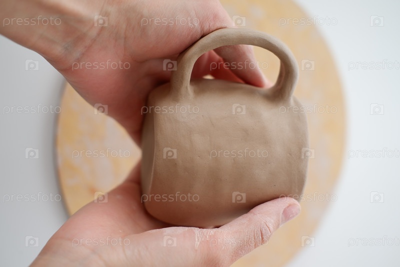 Изготовление глиняной посуды, рукоделие, лепка из глины, руки мастера, глиняная кружка