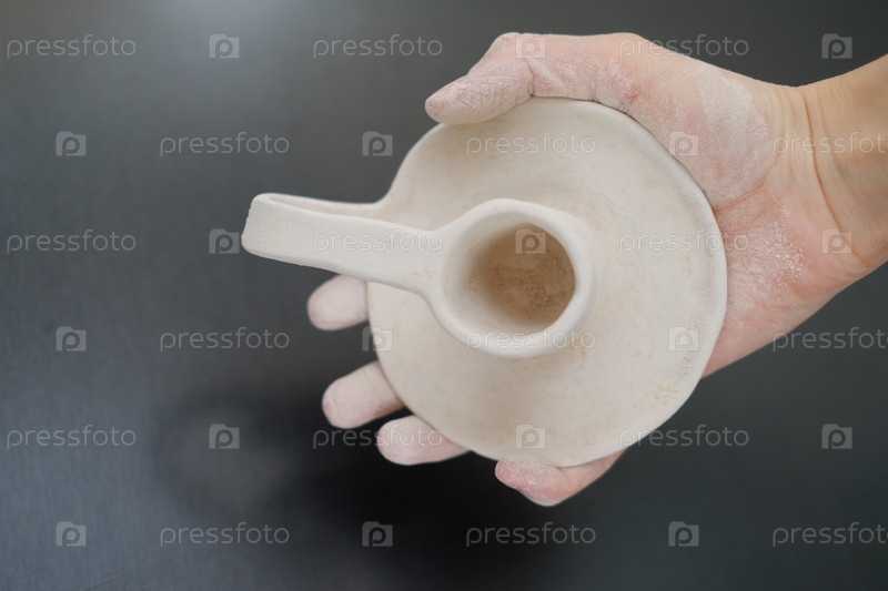 Изготовление глиняной посуды, рукоделие, лепка из глины, руки мастера, подсвечник