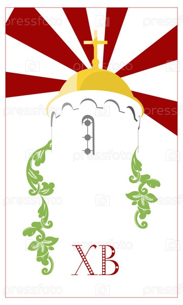 Векторный рисунок. Пасхальный плакат с куполом православной церкви и зелеными ветками
