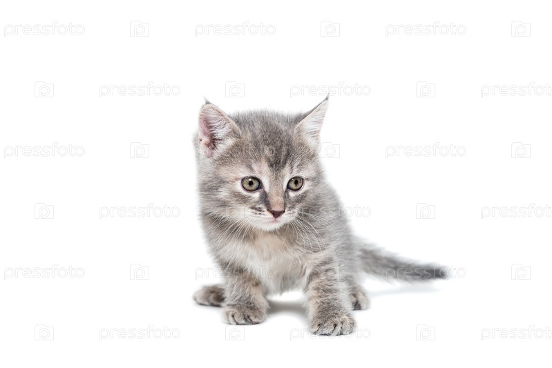 Серый котенок на белом фоне