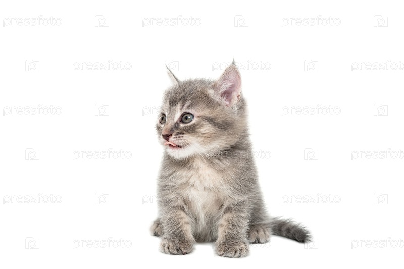 Серый котенок на белом фоне