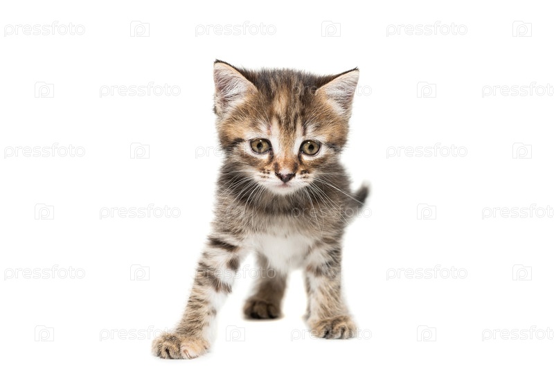 Серый котенок на белом фоне