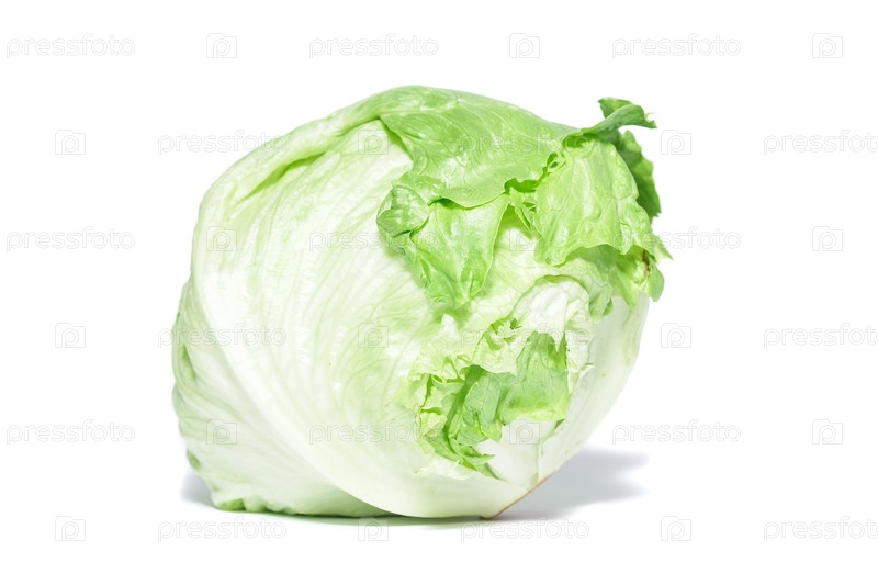 Зеленый салат Айсберг на белом фоне