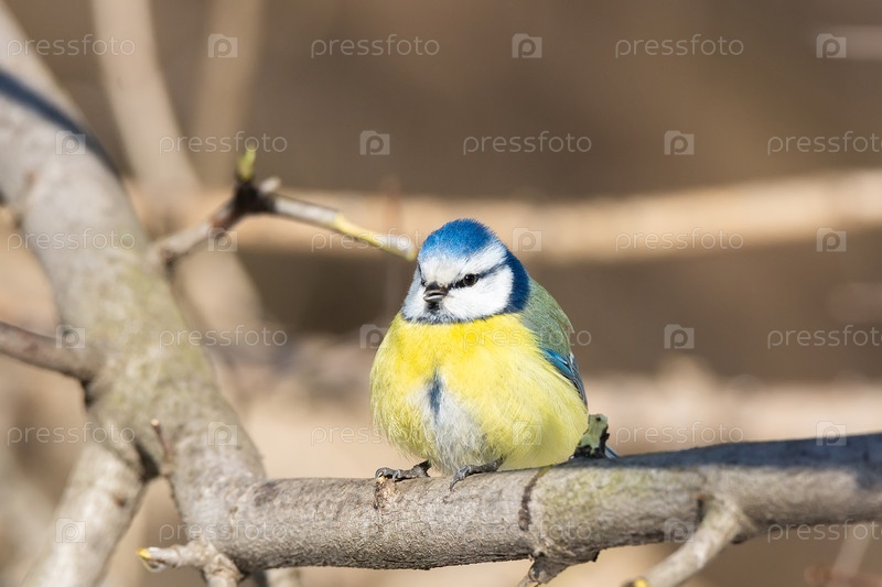 Синица (Cyanistes caeruleus) примыкает к себе