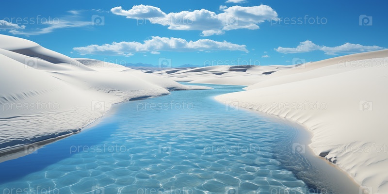 Лагуна с чистой водой между дюнами в пустыне после дождя