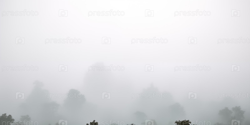 Легкий туманный фон с copyspace, панорамные виды на туманный горный пейзаж утром