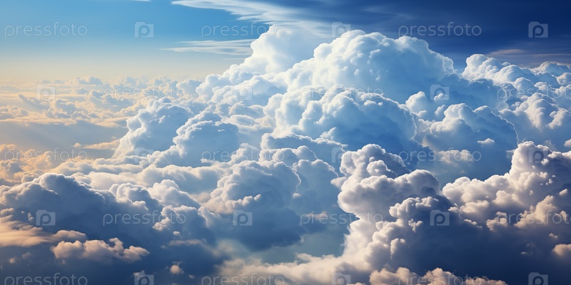 Облачный пейзаж, красивый вид с воздуха над облаками в солнечный день