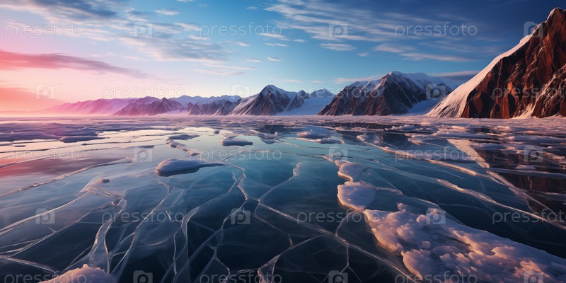 Зимний пейзаж, ледяная поверхность замерзшего моря