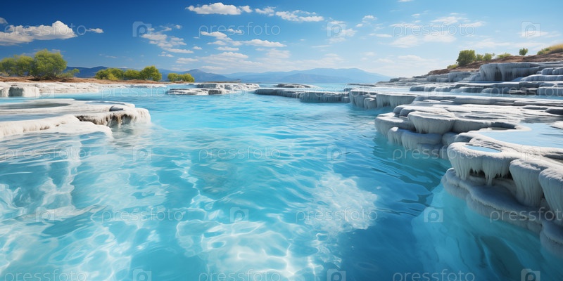 Красивый пейзаж с бирюзовой чистой водой в естественном каскаде минеральных источников