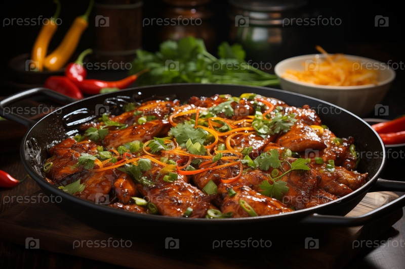 Запеченные куриные крылышки с овощами на чугунной сковороде