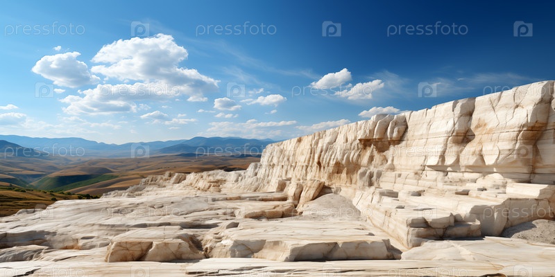 Пейзаж с белыми скалами, древний травертиновый карьер