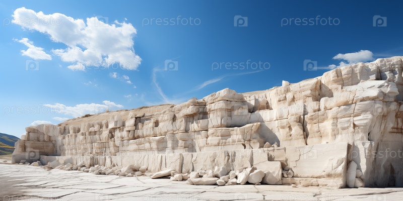 Пейзаж с белыми скалами, старый травертиновый карьер