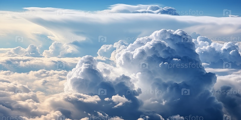 Облачный пейзаж, красивый вид с воздуха над облаками в солнечный день