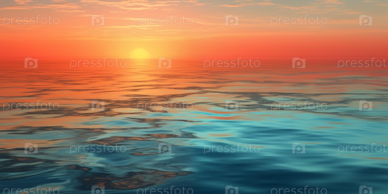 Фантастический пейзаж, водный пейзаж, красивый закат над морем