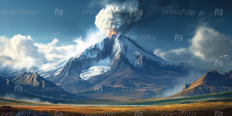 Красивый пейзаж с извергающимся вулканом
