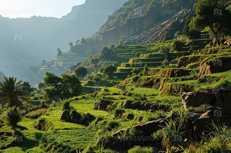 Тропический горный пейзаж с террасными полями