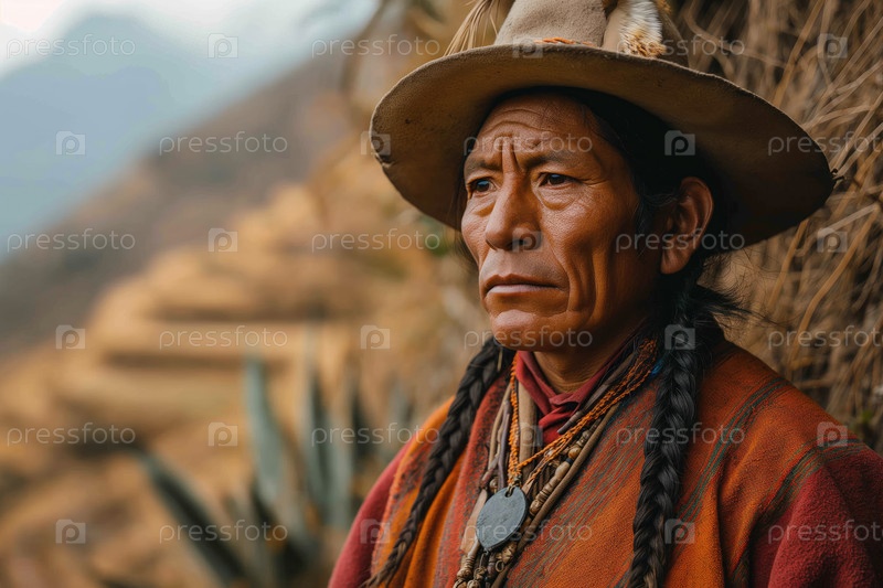 Пожилой перуанский житель деревни в национальной одежде