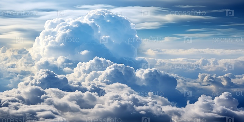 Облачный пейзаж, красивый вид с воздуха над облаками в солнечный день