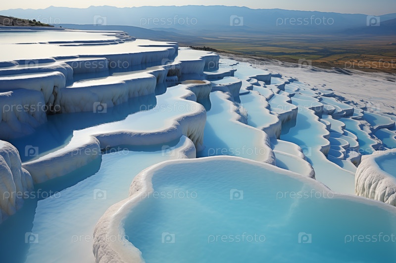 Красивый пейзаж с бирюзовой чистой водой в естественном каскаде минеральных источников
