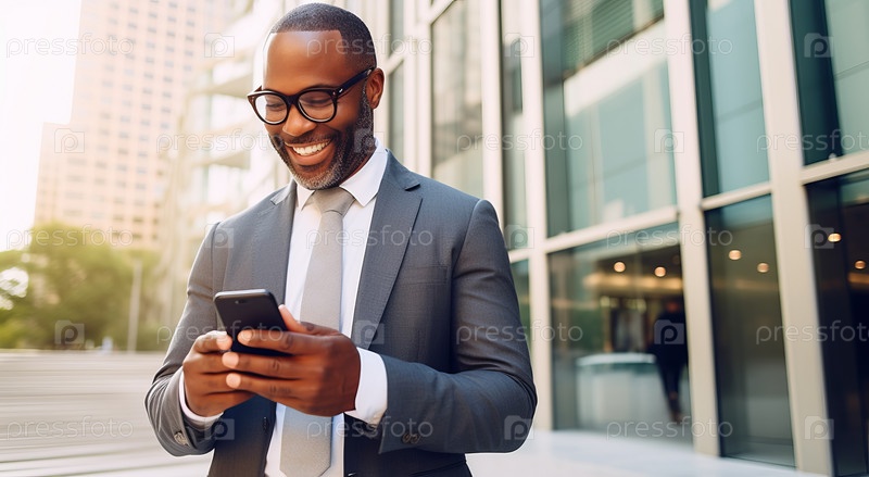 Крупный план афроамериканского бизнесмена в строгом костюме со смартфоном